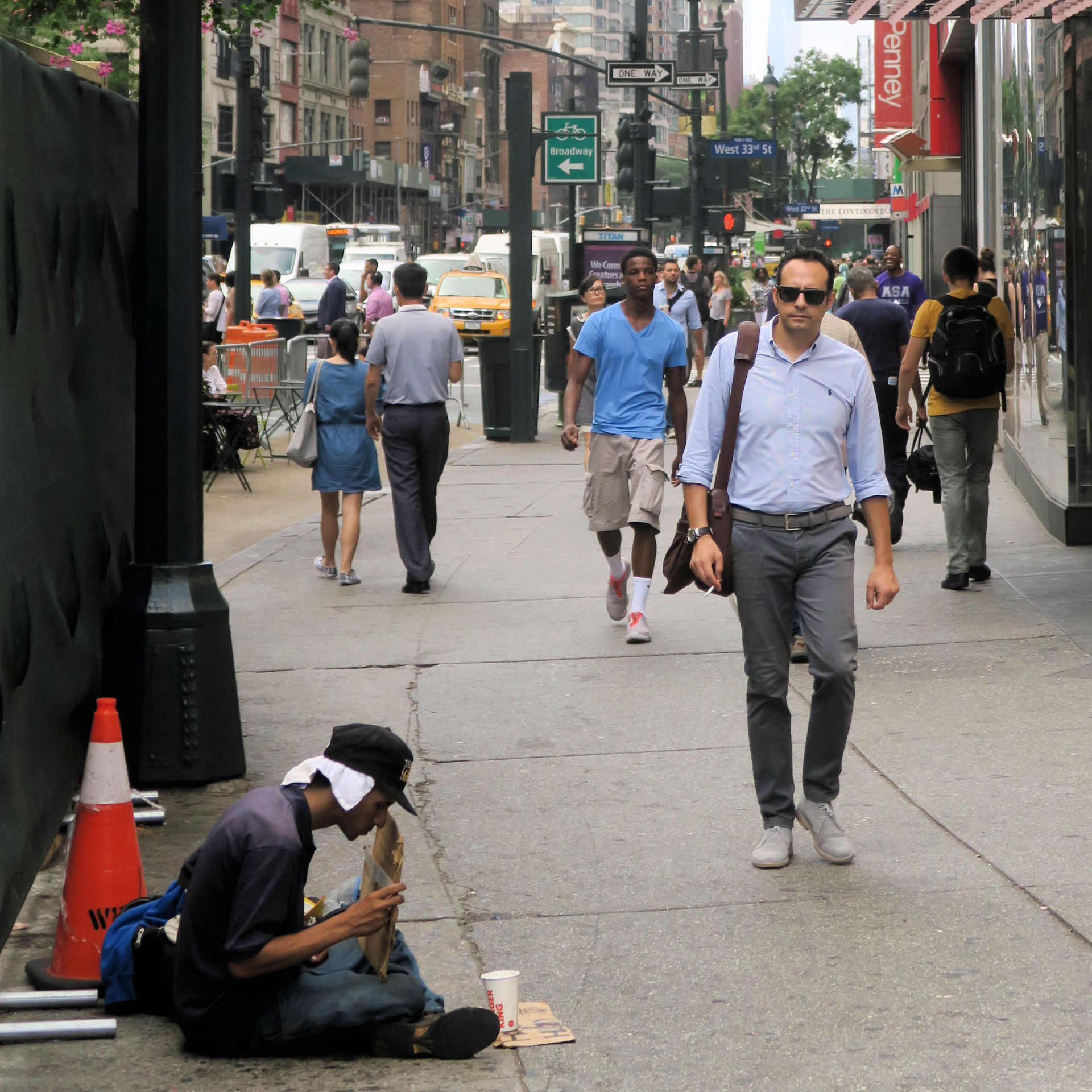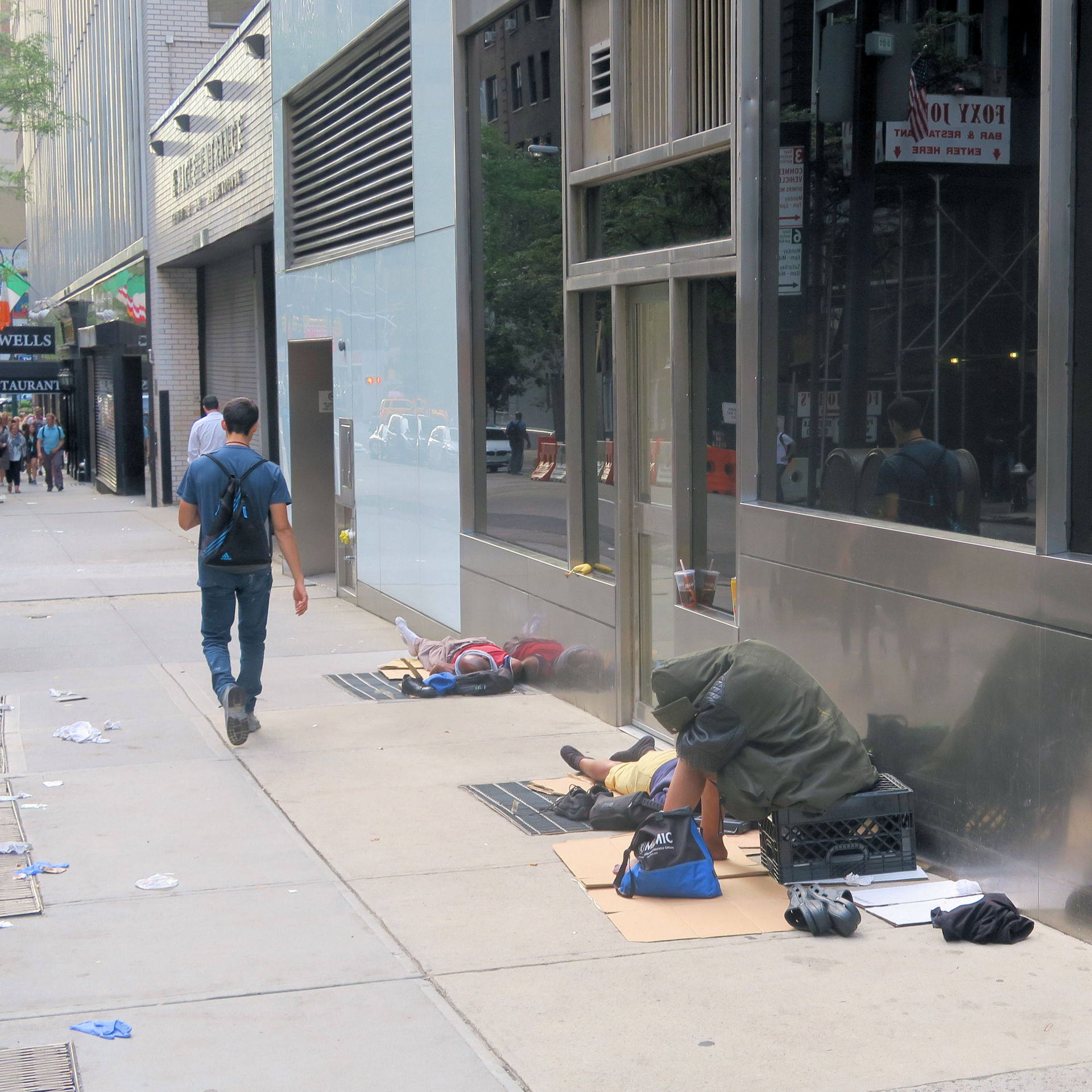 Dogs are not as common amongst the homeless as they are in France, but many do have them - one homeless couple I saw near Grand Central Station even had a cat on a lead. However the sheer volume of homeless and destitute people on the streets of new York is horrendous. The worst of it is how many are clearly infirm, vulnerable or mentally damaged.