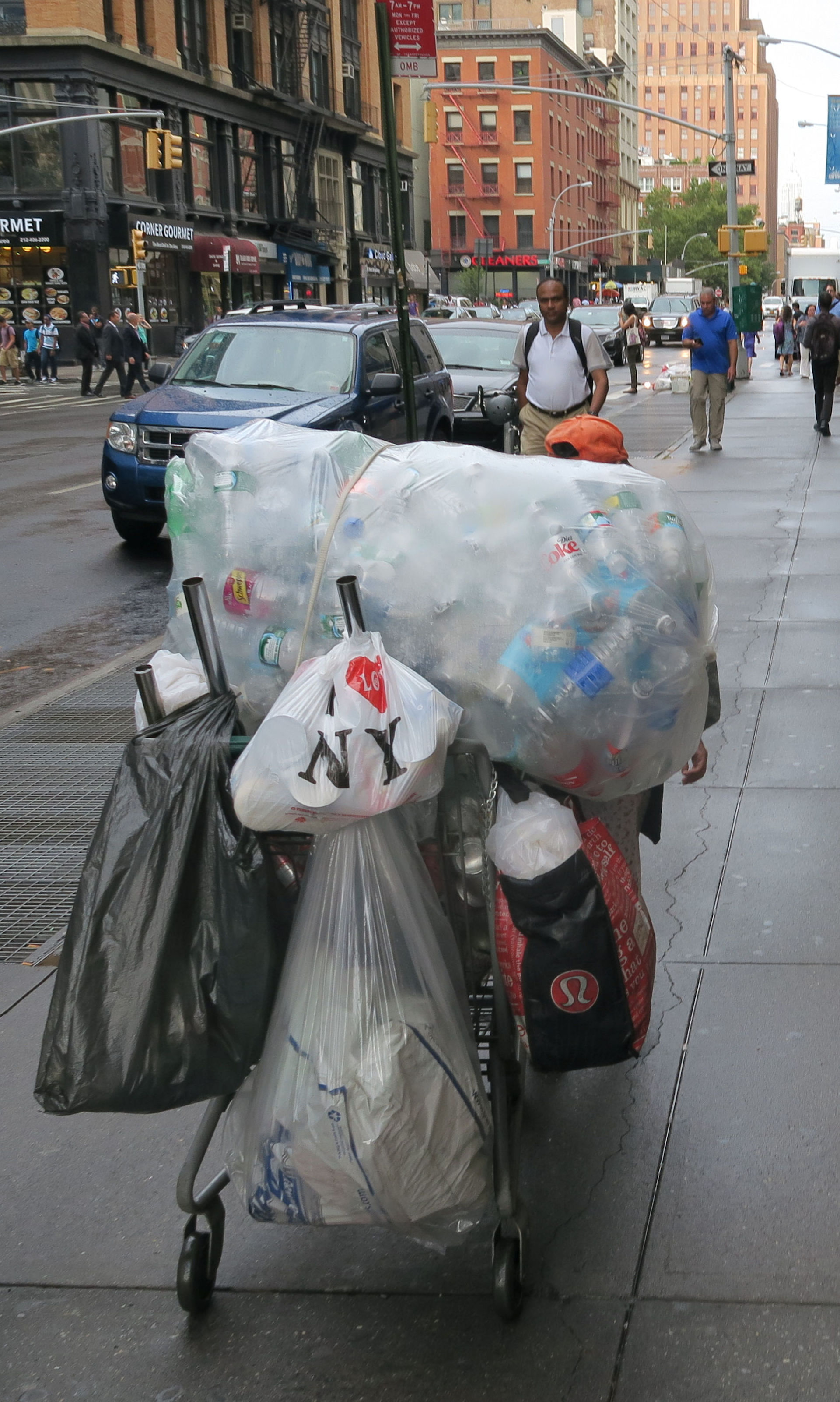 Apart from taking photographs, native New Yorkers spend an inordinate amount of time on the phone. This makes navigating the pavements perilous - particularly if they are using an umbrella as the speak. Americans also have a particular skill in projecting their voices, so it is impossible not to catch snippets of conversation. "When you shut out those... [pause] voices", "The apartment is crawling with cockroaches", "I mean, yea, really, like, well - yea", "So your daughter is a lesbian". All heard in one day out on the sidewalks of Manhattan.